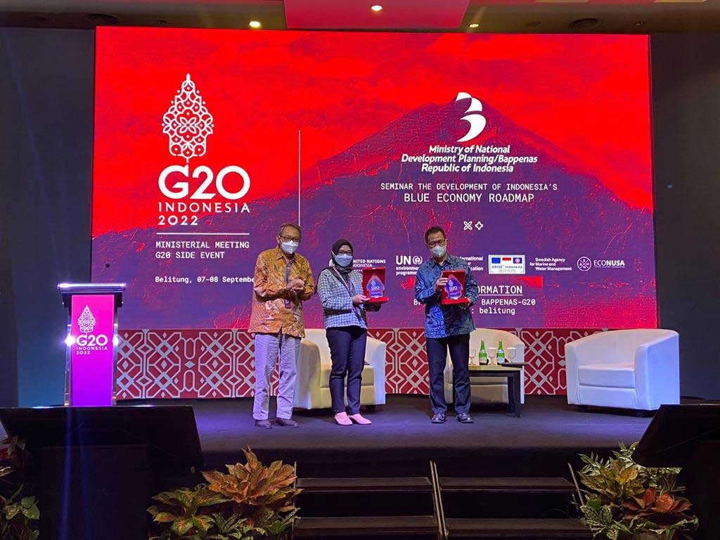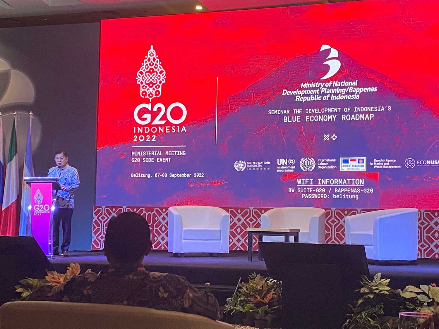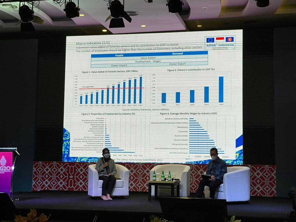 ARISE+ Indonesia Trade and Investment Expert, Widdi Mugijayani, presented the analysis at the Development of Indonesia's Blue Economy Roadmap Seminar, one of the Ministerial Meeting G20 Side Events organised by the Ministry of National Development Planning (Bappenas) in Belitung Island on 7 September 2022.