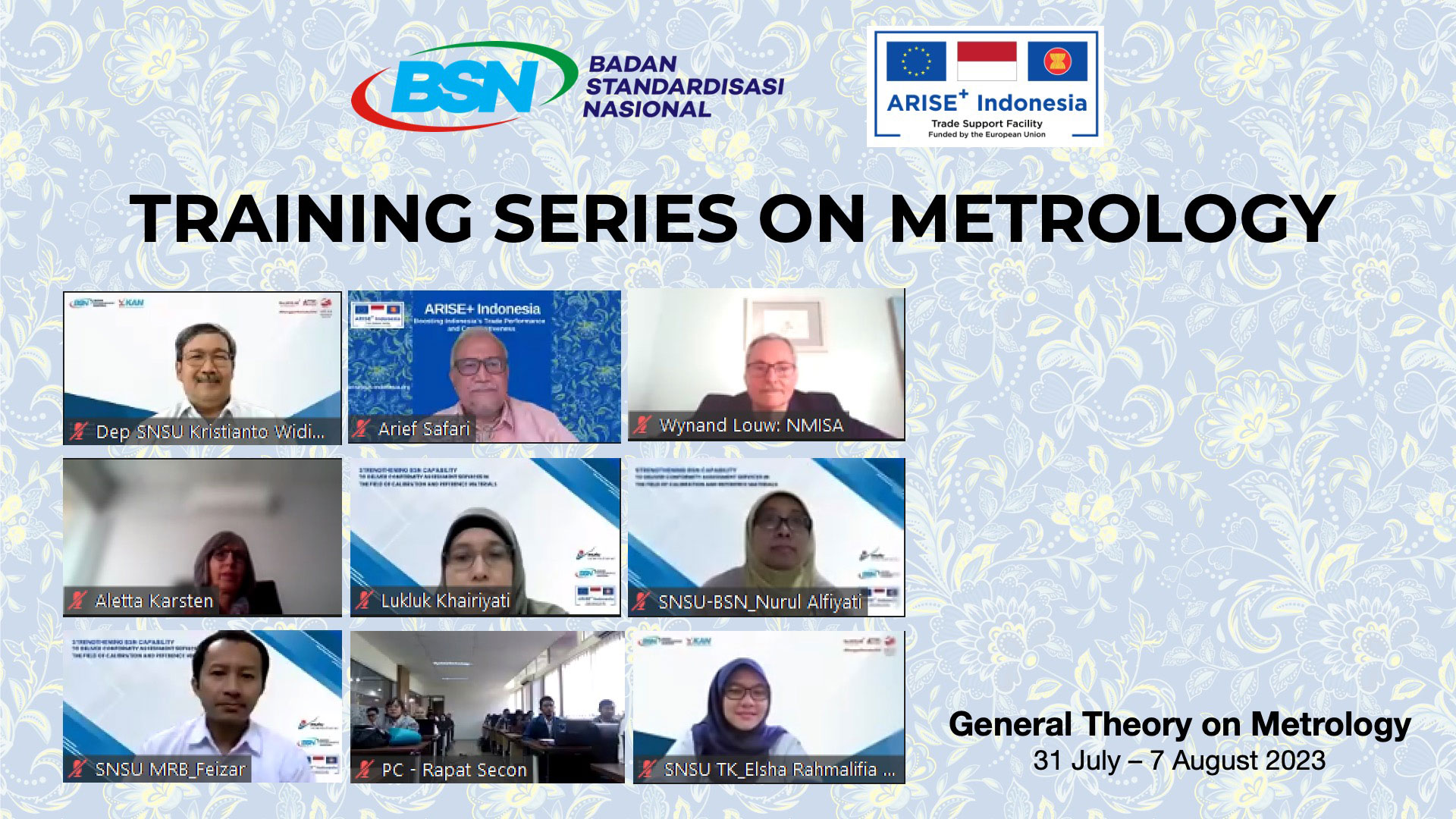 The pivotal role of metrology in maintaining accurate measurements and ensuring precision across diverse fields cannot be overstated. Recognising its significance, the Deputy for National Measurement Standards (SNSU) of the National Standardization Agency (BSN) collaborated with ARISE+ Indonesia to conduct a comprehensive series of training sessions focusing on metrology. The training, which is scheduled from July to November 2023, aims to enhance the competence and capacity of metrologists within the agency.