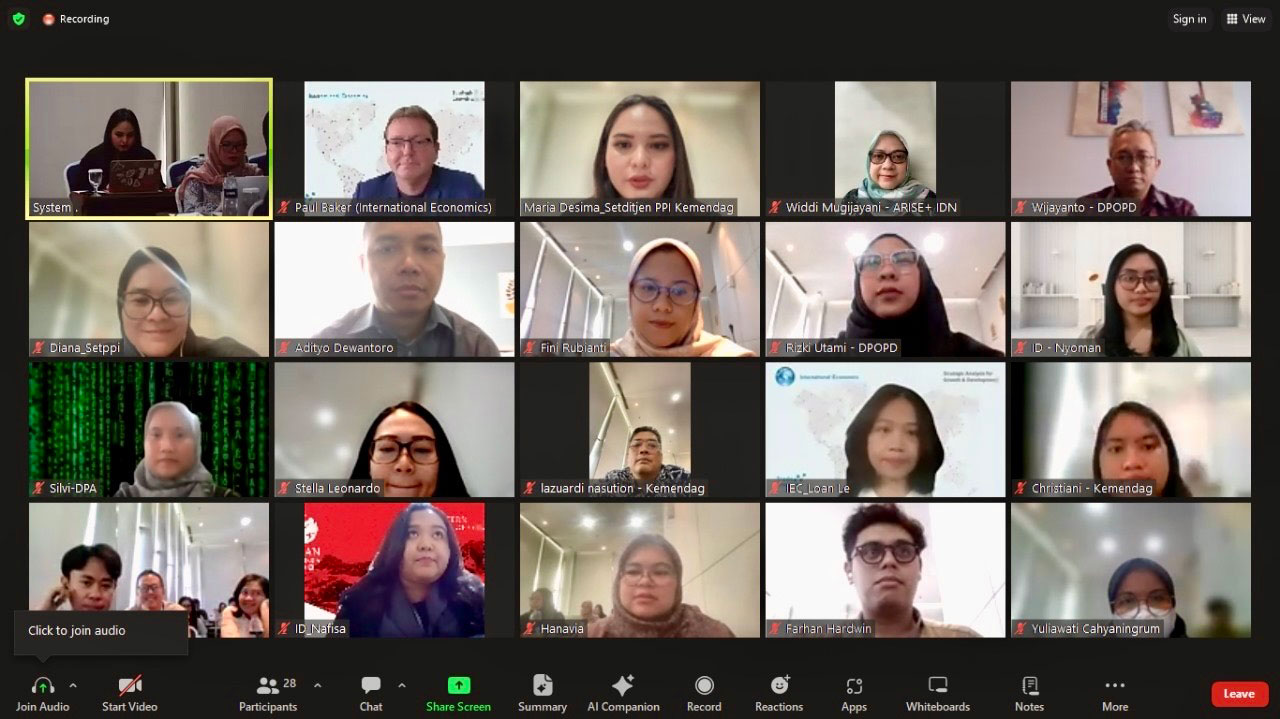 Those key takeaways are taken from the capacity-building session on Non-Tariff Measures (NTMs), Trade Reform, and Sustainability. The session focused on MSME Provisions in Trade Agreements and was organized with the support of ARISE+ Indonesia. The workshop, held on February 16, 2024, brought together trade negotiators and analysts from the Directorate of World Trade Organization Negotiation and the Ministry of Trade, as well as policymakers from relevant ministries and agencies, including the Ministry of Women's Empowerment and the Ministry of Cooperative and MSME.