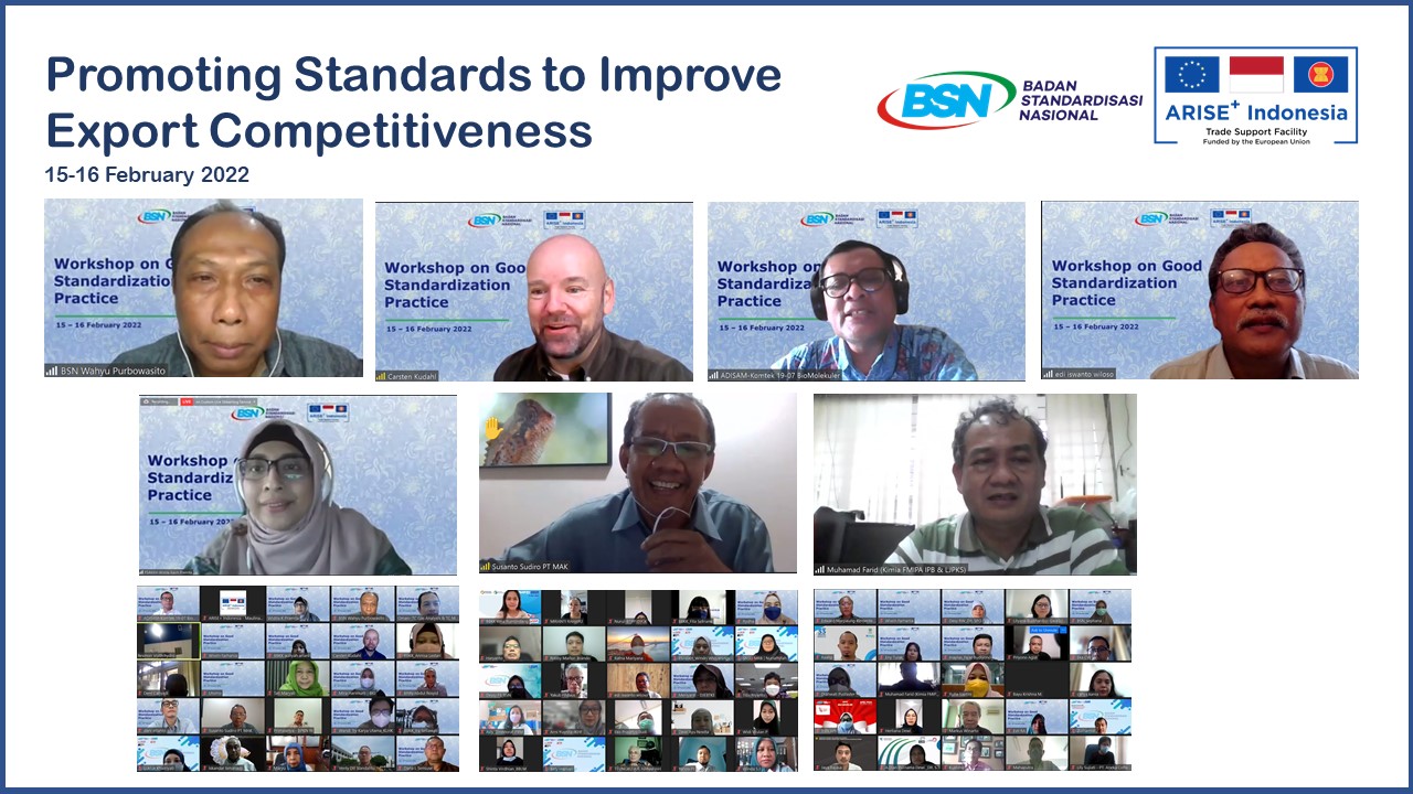 The National Standardization Agency (BSN) held two workshops on Good Standardisation Practice and Good Regulatory Practice, with assistance from ARISE+ Indonesia. As the national standardisation body, BSN plays a central role in making standards available to the business community and ensuring that all national standards are up-to-date and harmonised with international standards.