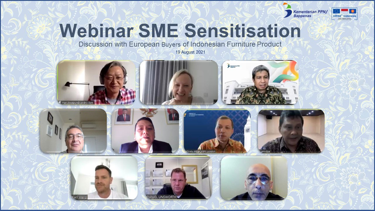 The Directorate of Small, Medium Enterprise (SME) Development and Cooperative of Bappenas (the Ministry of National Development Planning) hosted the SME Sensitisation Webinar – Discussion with European Buyers of Indonesian Furniture Products with support from ARISE+ Indonesia. The webinar was held on August 19, 2021, and was also streamed on the ARISE+ Indonesia Youtube channel.