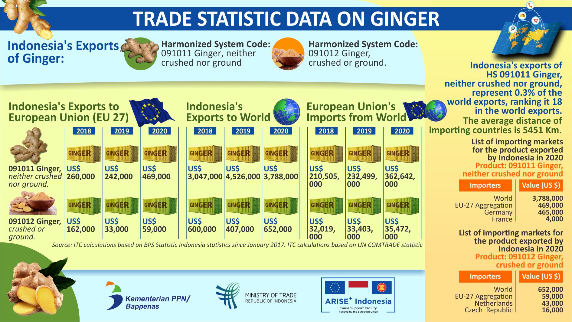 Complementing the webinar series, ARISE+ Indonesia will support Bappenas, the Ministry of Trade, and the Ministry of Cooperatives and MSMEs to create digital tools to help Indonesian exporters and producers of Ginger in tapping new market opportunities, especially in the European Union.